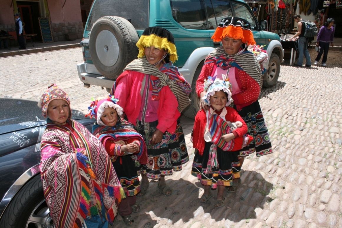 麓の村には、土産物の市場が開かれている。もともとは地域の交易の場だったらしいが、今はお土産でいっぱいのようだ。リマやクスコの街中で買うよりも品揃えがよく、値段も安い。民俗衣装を着た家族をみかけたので写真を撮ったところ、チップを要求された。チップ払うから正面から写真を撮らせてくれ、と頼むと、きっちり営業スマイル。大したものだ。