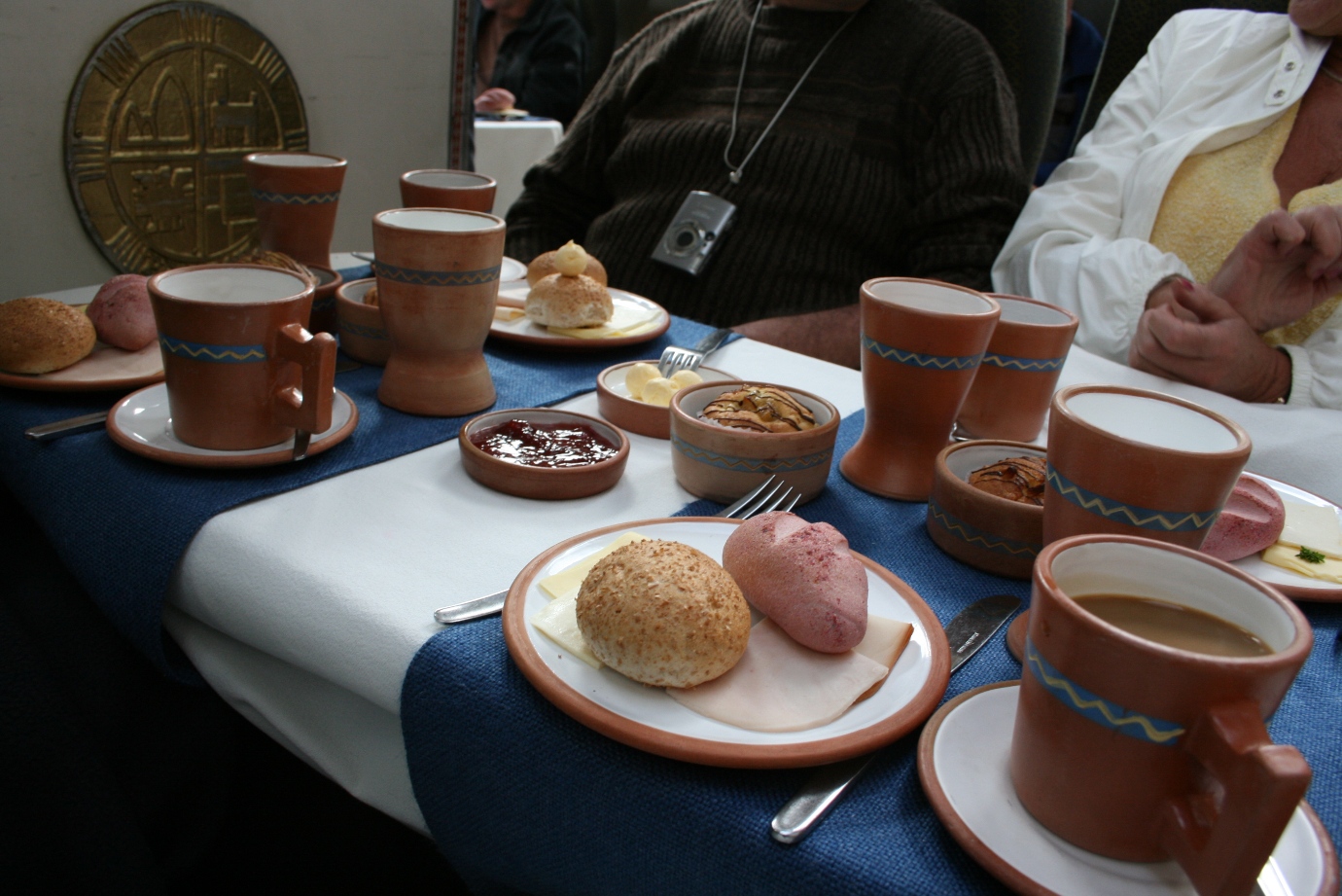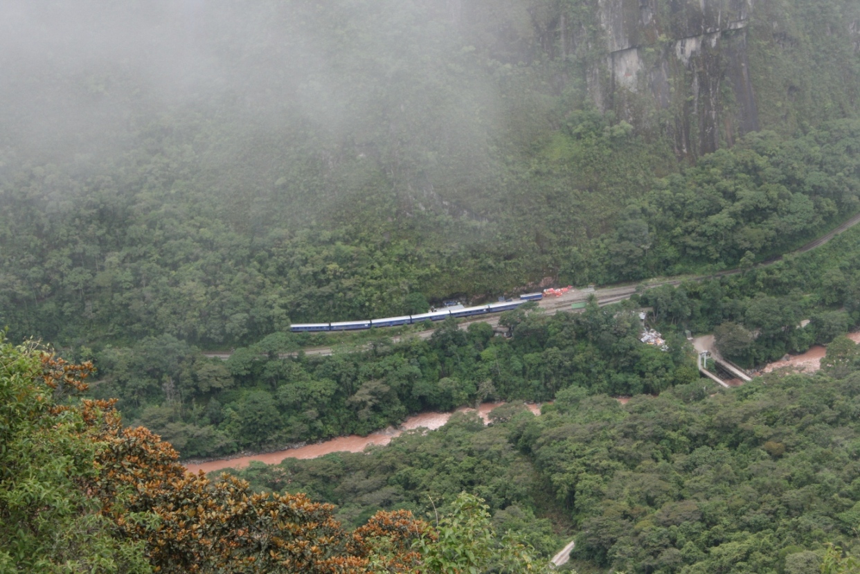 この日はナスカと並ぶペルー観光のハイライト、マチュピチュへと向かう。クスコから200kmほど離れた山奥の遺跡へは、ペルーの2箇所しか残っていない鉄道で向かう。片道約4時間、71ドル。実はバスで行けばもっと早く、もっと安くいけるのだが、まあそこは風情を買った。完全に観光客ばかりの列車は思いのほかよく整備されていて、シンプルながら朝食まで提供される。まあ71ドルといえば現地の経済感覚では日本でいう2万円くらいの金額なので、食事くらい出ても当然かもしれないが。