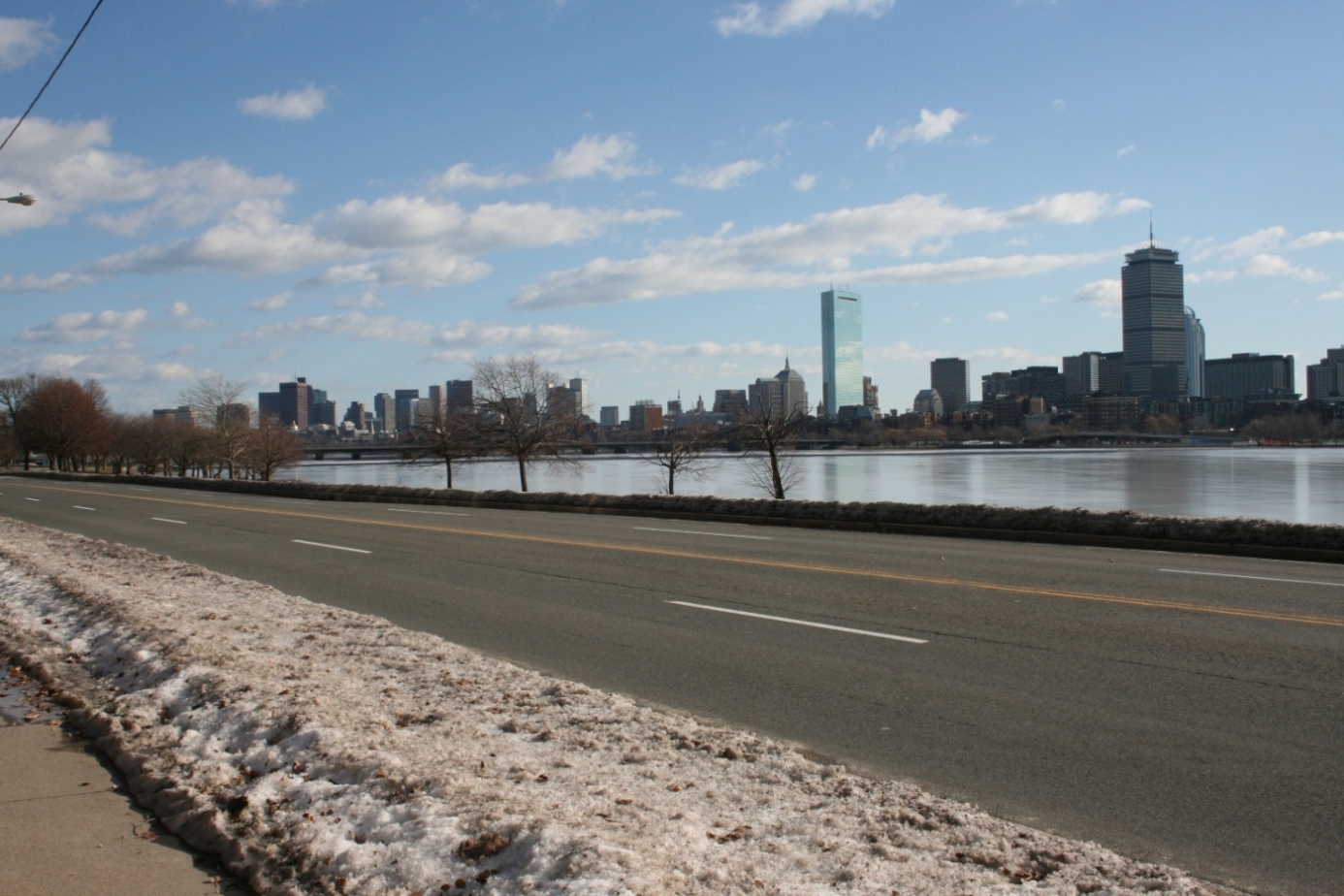 Charles川沿いの通りに出ると、澄んだ空気の向こうにボストンのビル群が光っている。