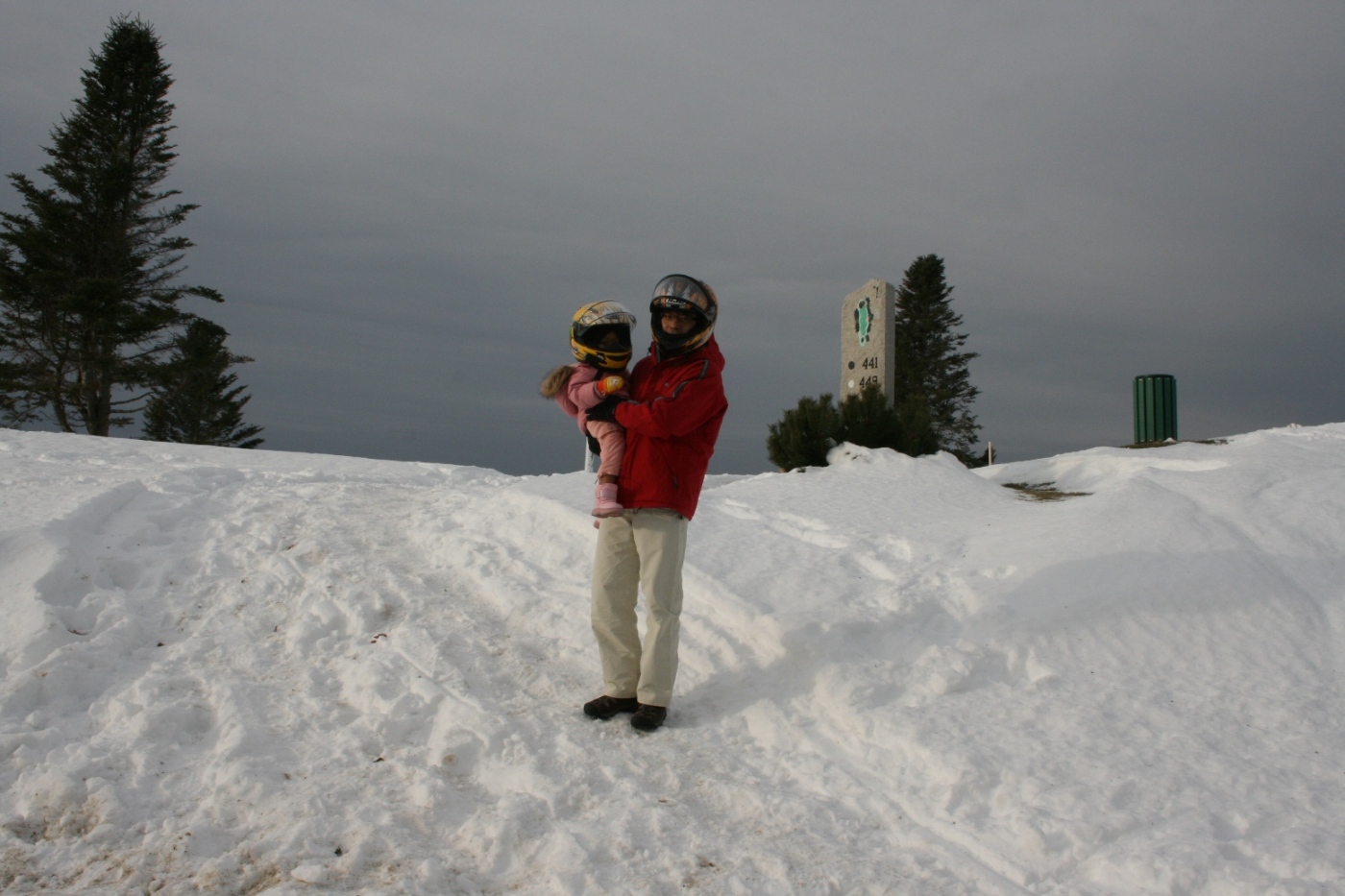 スノー・モービルには、私の足の間に娘が座るかたちで、二人乗りをする。White Mountain地方は、東海岸で最大のスノー・モービル許可地域らしく、走行可能な林道が整備されている。普段みられない独特の目線で、1時間ほど雪景色の中を散策する。