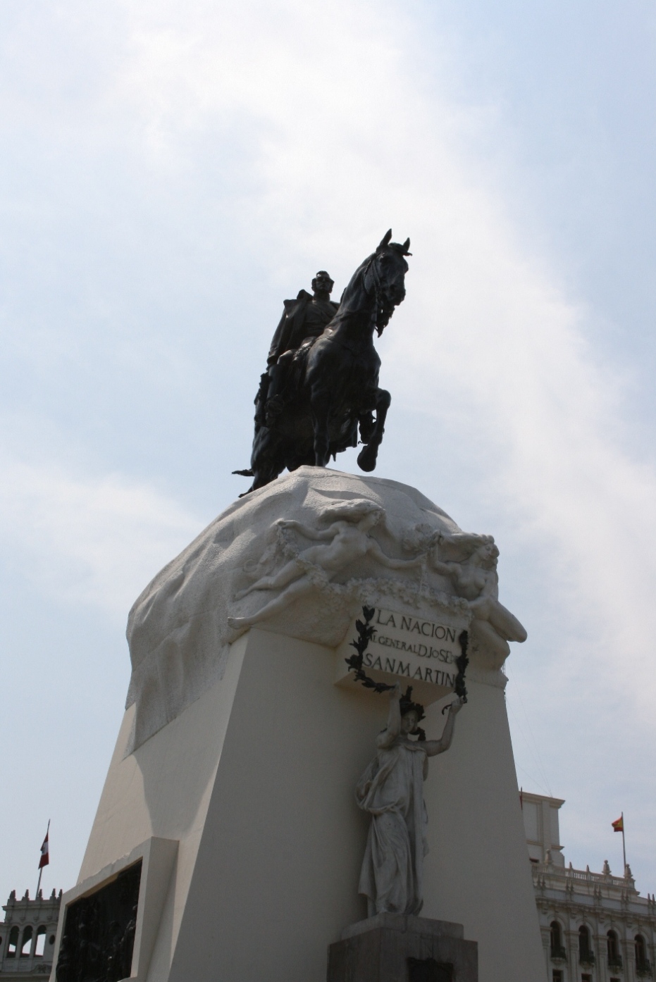 20分ほどで旧市街の一端であるSan Martin広場に到着。アルゼンチン出身のペルー独立の英雄San Martinの騎馬像が広場の中央にそびえる。