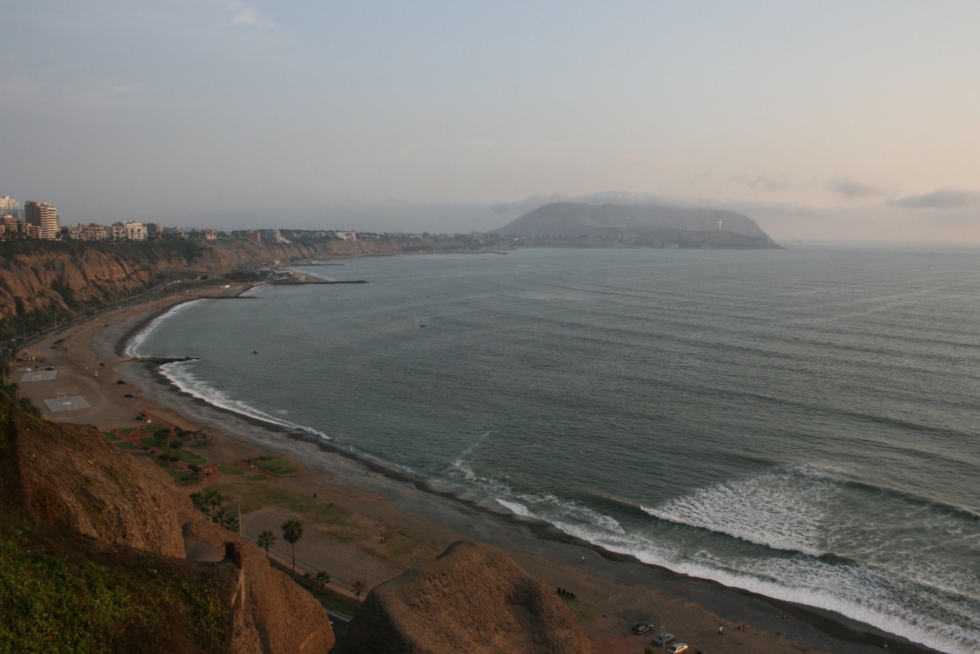 中流・上流階級と思われる家々やホテルが並ぶ新市街を南に歩いていると、やがて海に出る。太平洋である。断崖の下にビーチがある。夕陽に映えているためか、海岸線の風景は思いのほか美しい。パラグライダーが飛び交い、カップルが戯れている。海岸沿いのマンションは、見るからに高級そうで、街のほかの部分から隔絶している。基本的に海に近づくほど所得水準が上がるらしい。