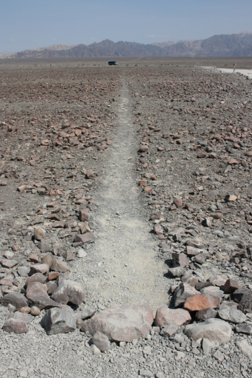 最初の1時間ほどは、眠気を覚まそうとするかのように会話を続けていたが、片道5時間半も車に揺られていると、さすがに会話も尽きる。景色も単調で、どうしても眠気が襲ってくる。そしてウトウトとしていると、砂漠の真ん中で車が止まった。見上げると、鉄骨で出来た簡単な展望塔がある。地上絵を見おろすためのものだ。