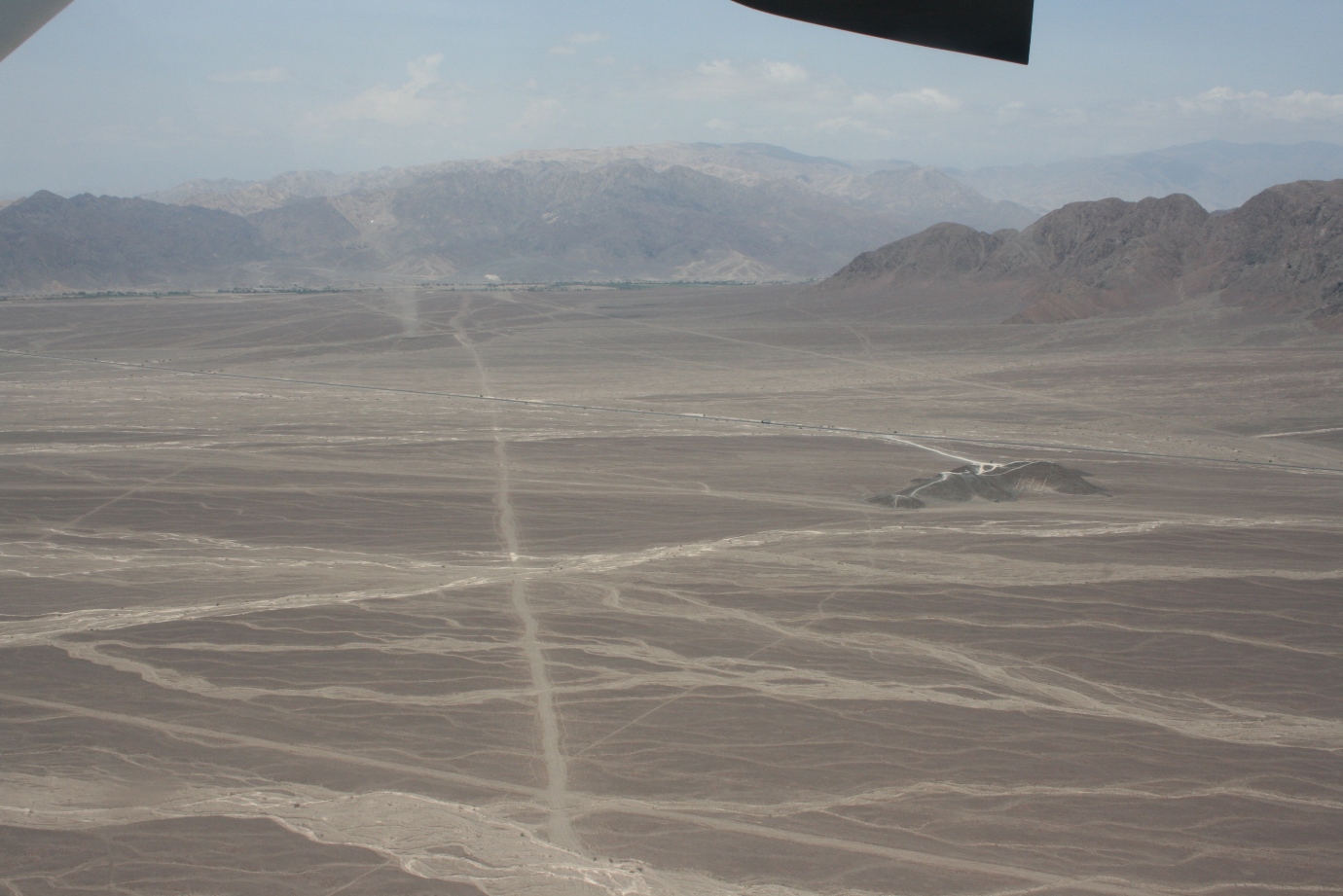 乗り込むや否や、シートベルトを装着し終えるより早く、すぐに出発。エアコンも何もないプロペラ機である。本当にこんなものが飛ぶのか、とすら思っているうちに、フワっと機体は宙に浮き上がった。意外と安定している。色々な口コミや文字情報で、ナスカの遊覧飛行は酔うと脅されていたが、大したことないな...