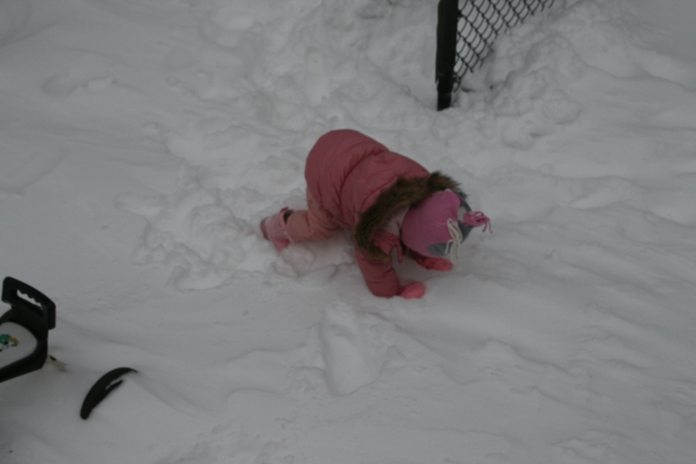 怖がり屋さん我が娘、去年は頑なに雪で遊ぶのを拒み、雪の上を歩くことすら嫌がったが、今年はどうかと思って誘ってみると、外に行く、という。