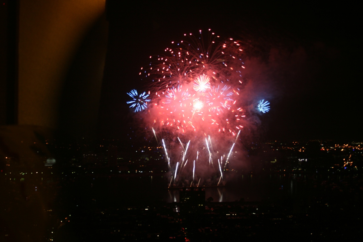 ボストン側に渡って、多少夜の街を散歩した後、私のインターン先のオフィスに向かう。高層ビルの最上部に陣取る同社は、この日の花火イベントのために、チャールズ川を見下ろす食堂スペースを、従業員とその家族に開放していた。