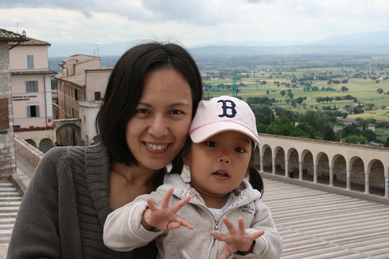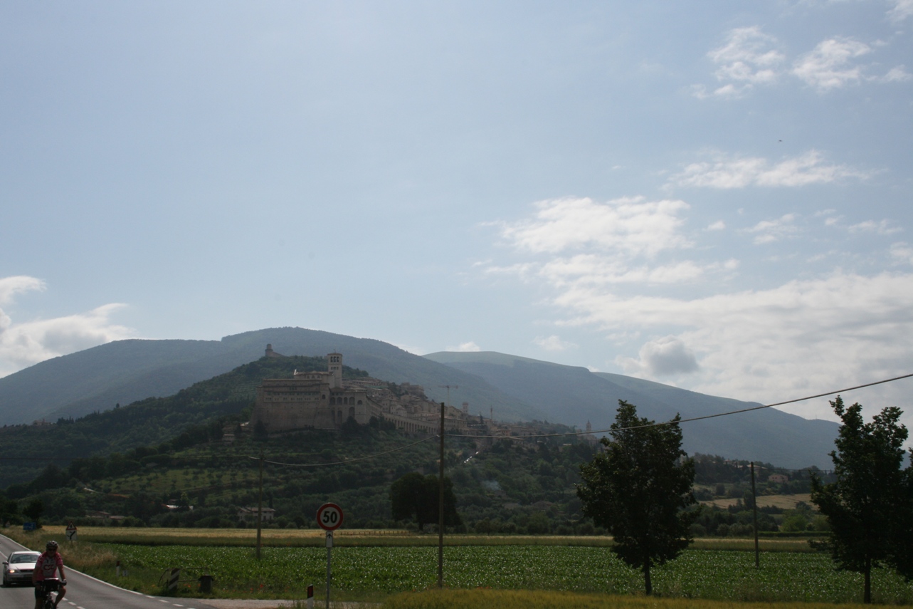 アッシジのほかに、かつて中田英寿が活躍した州都ペルージャ、ワインとオリーブオイルの町モンテ・ファルコなどを訪ねる。いずれも魅力的な景観で楽しませてくれるが、みな丘の上にあるため、妻と2台のベビーカーを押して歩く身にはなかなかきつい。