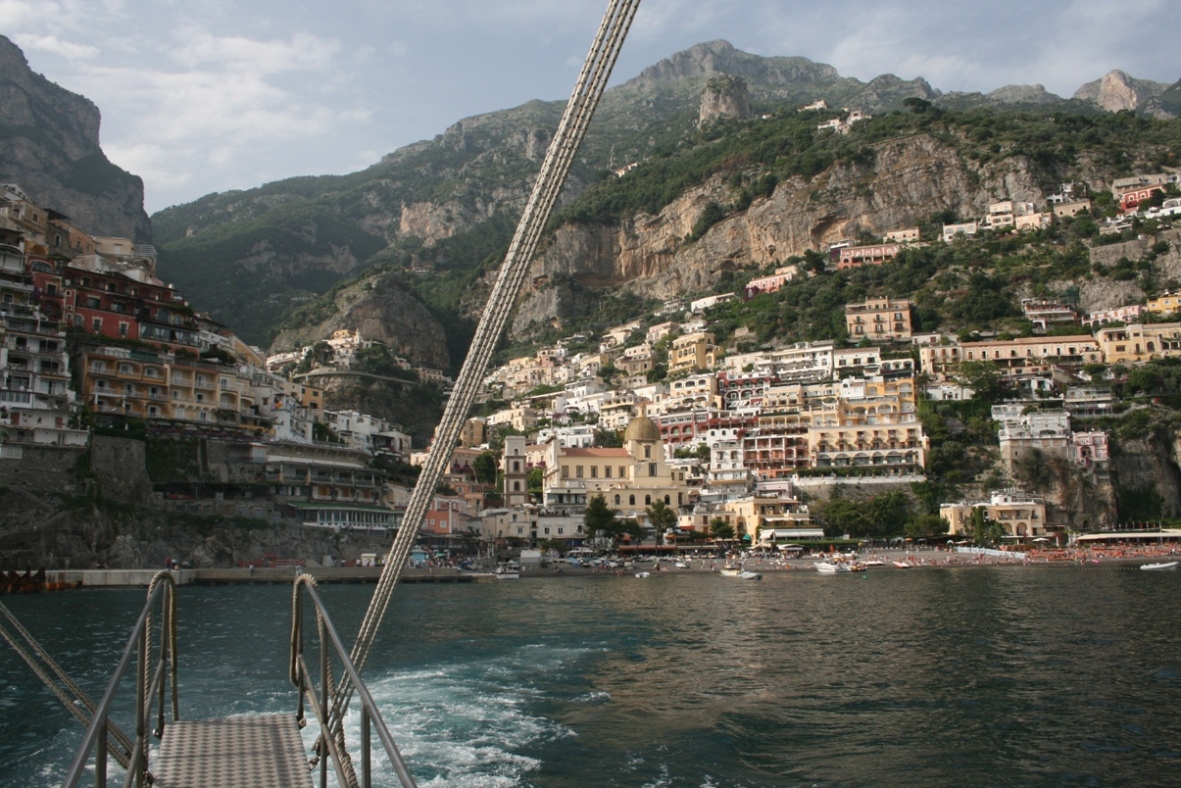 この地域を周るのなら海路が良い、というガイドブックやホテルスタッフの勧めに従い、フェリーで海岸線の景観を楽しみながら、周辺の町を巡る。まずは途中、ポジターノという街を経由し、ソレントに向かう(下の写真はポジターノ)。