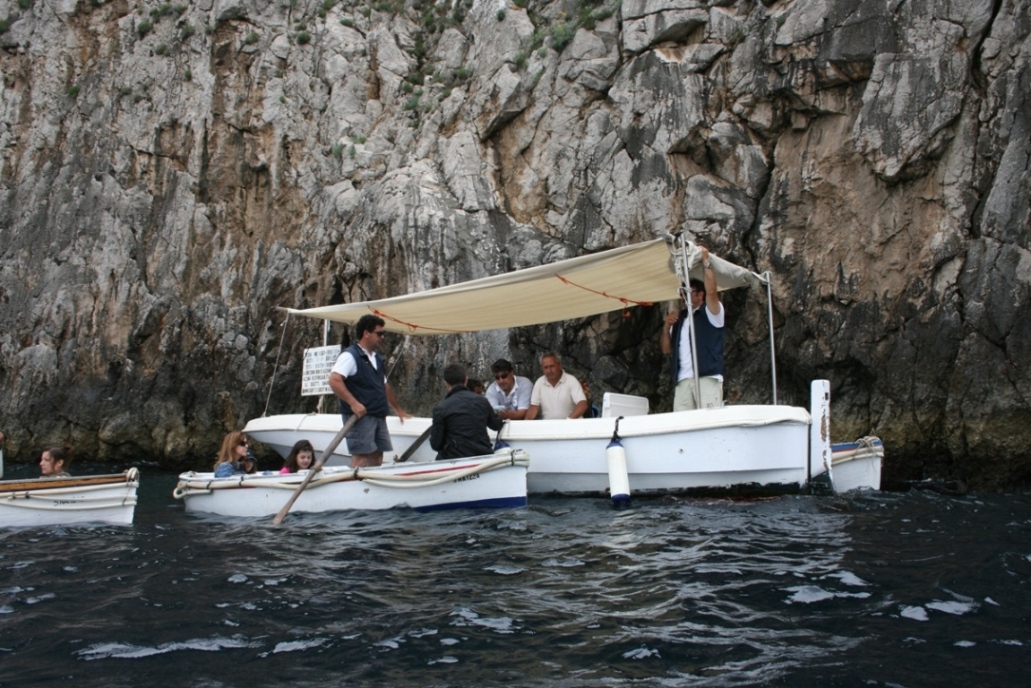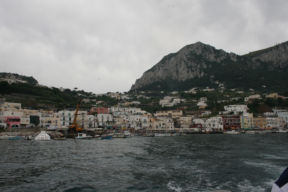 ソレント半島の数km先に浮かぶカプリ島には、ソレントから高速船で渡るのが最もメジャーだが、宿泊しているアマルフィからも船が出ている。満員の船で、その小島に向かう。