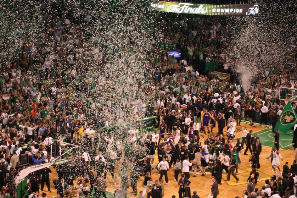 昨年の秋、ボストンはレッドソックスの優勝に沸いたが、この夏はNBA(全米プロバスケットボールリーグ)のボストン・セルティックスの優勝に沸いた。かつて赤い服を着てはしゃいでいた人々が、今は緑の服をきて騒いでいる。なにせ、最近はすっかり強豪に数えられているレッドソックスとは異なり、セルティックスは過去最多の優勝回数を誇りながら17年間も優勝から遠ざかっていたチームなので、コアなファンにはたまらない興奮だったのだろう。