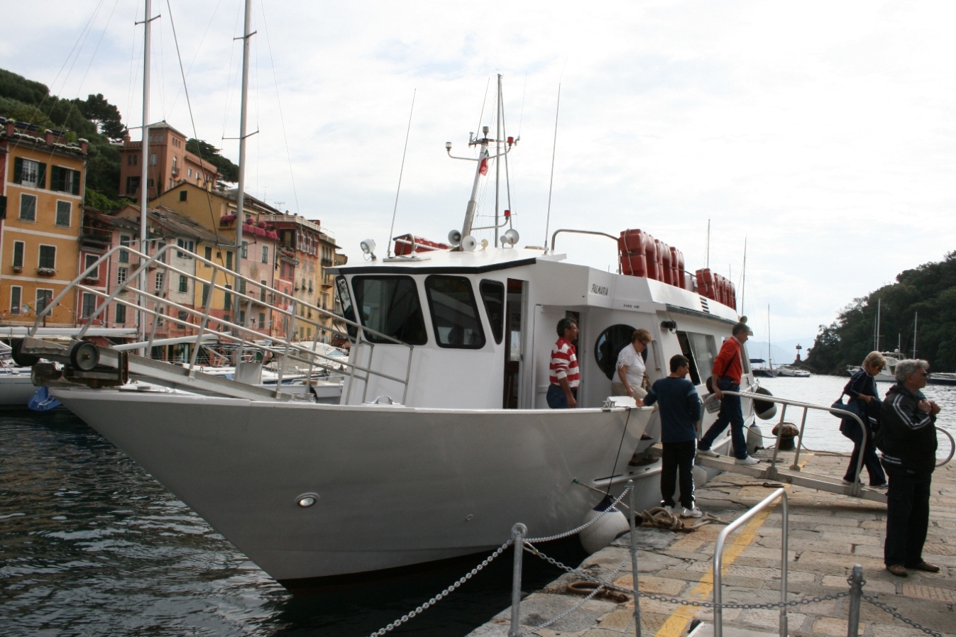 40分ほどで、船はこの地域の観光のハイライトのひとつ、Portofinoという村に到着する。