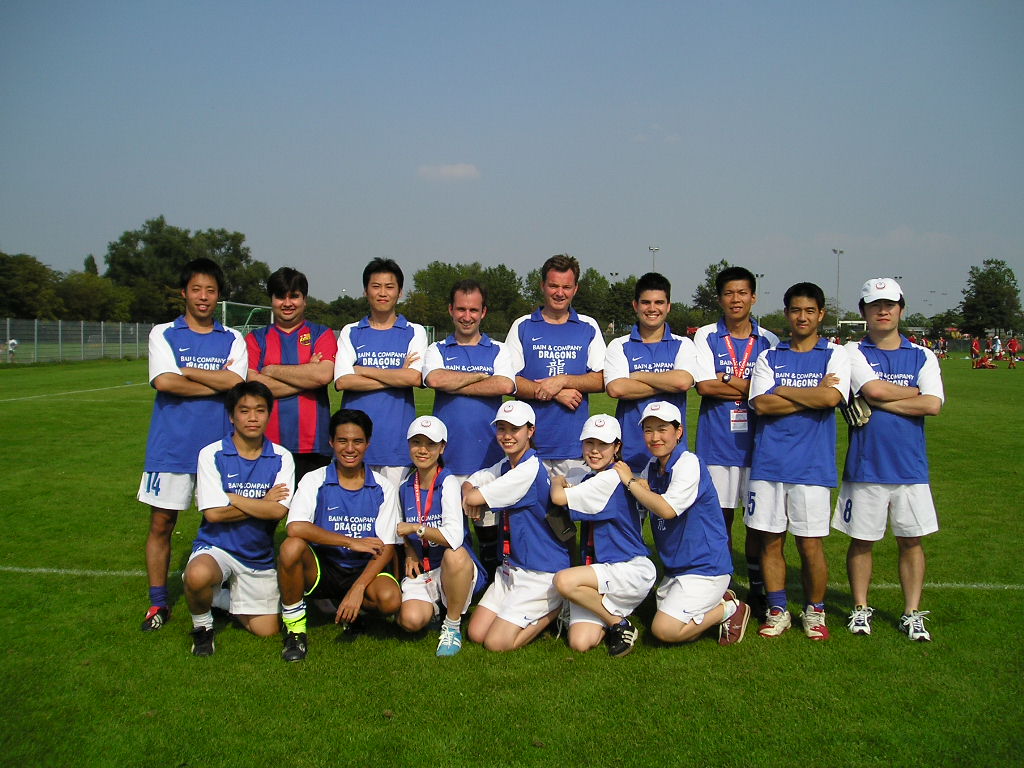 所属するコンサルティング会社が全世界のコンサルタントを集めて毎年開催するサッカー大会がある。2004年にデュッセルドルフで開かれた大会に私は選手として参加し、当時ソウルオフィスでアシスタントだった彼女も応援に来ていたのだった。パソコンのハードディスクの空き容量が少なくなってきたので、彼女は古い写真を整理していたらしい。そしてそのディッセルドルフのサッカー大会の写真を整理しているときに、ちょうど私が前を通りかかったのだという。その写真がこれ↓